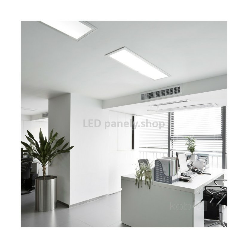 LED přisazený/vestavný panel 1200x300 s vysokou světelnou účinností, bílý rám, výkon 36W, světelný tok 4320 lm, barva světla 4000K. Krytí panelu IP20. Tenký rám 39 mm. Přisazená instalace nebo instalace do kazetových podhledů. Integrovaný napájecí zdroj. Životnost L80 min. 30.000 hodin. Záruka 3 roky.