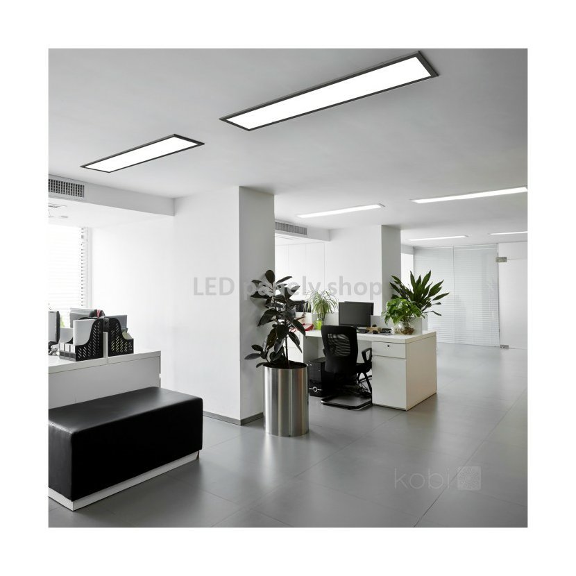 Přisazený LED panel 1200x300 se světelnou účinností 110 lm/W. Černá barva panelu. Výkon 36W. Světelný tok 3960 lm. Záruka 3 roky.